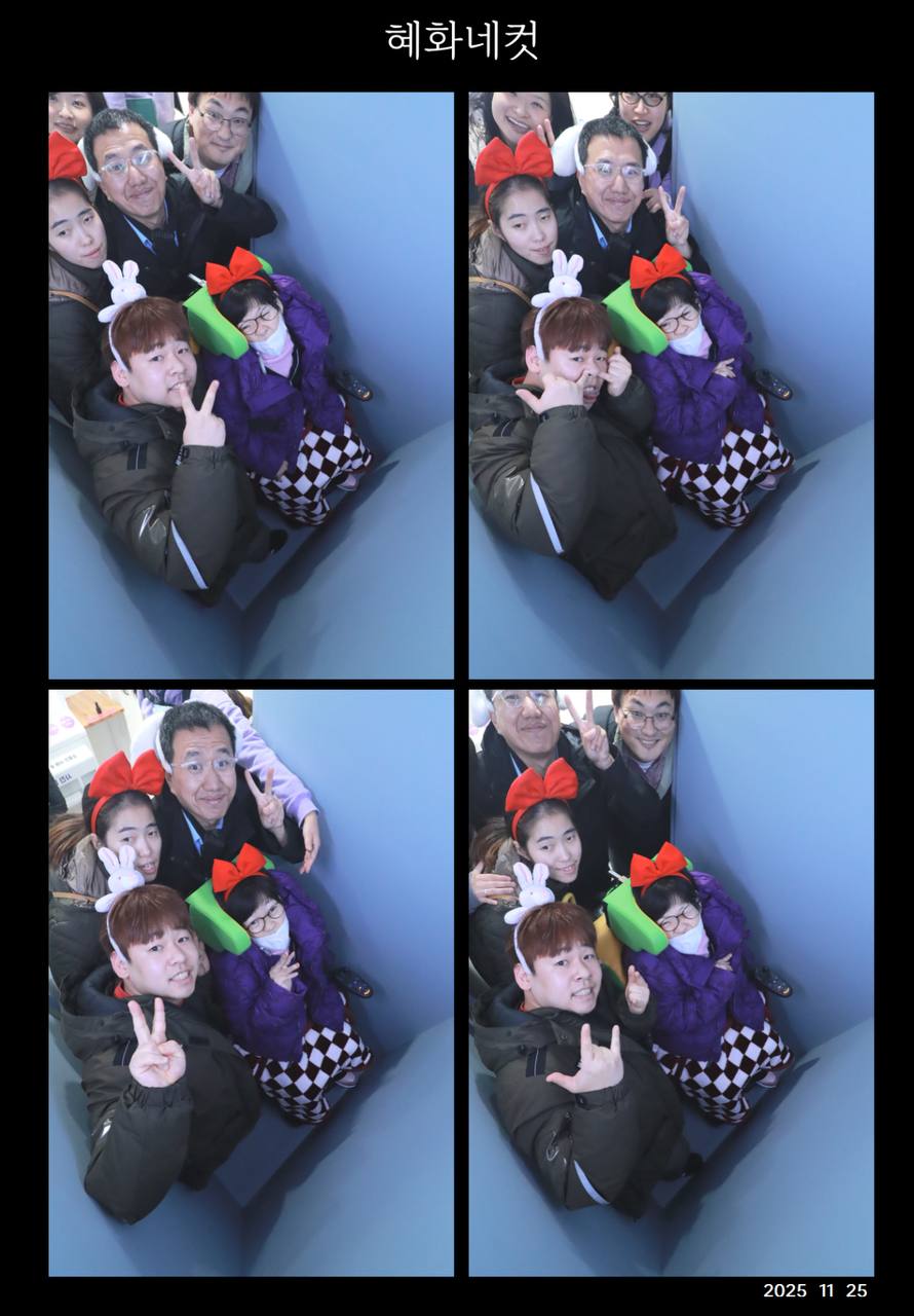 함께 찍은 인생네컷 사진도 재미있었어요. 스티커 사진은 처음 찍어봐서 어디를 보고 사진을 찍어야 하는지 잘 모르겠더라구요. 그래도 리본 머리띠를 하고 청솔2반 다 같이 사진을 찍을 수 있어서 즐거웠어요.