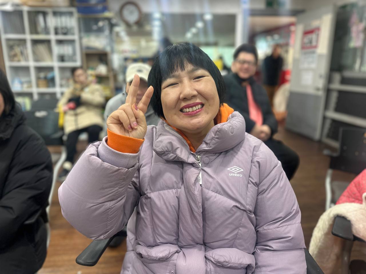 파티에서 뭘 했나요? 파티에서 어떤 게 좋았어요? 파티 때 노래도 부르고 발언도 하고. 탈시설해서 나와서 처음에는 나온지가 얼마 안되서 못해갖고 우리는 해볼려고. 노래는 나는 자옥이 부르고. 팔로 하트 모양하면서 사진도 찍고.