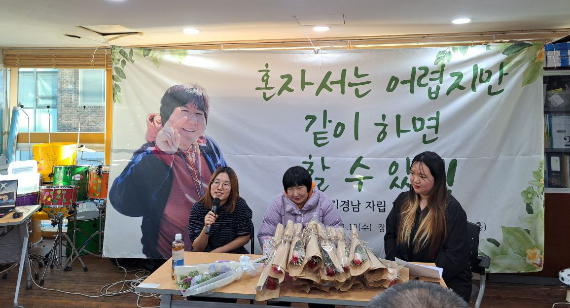 지난 11월 19일, 경남 님이 탈시설한지 15주년을 기념하는 파티를 열었습니다. 파티와 관련하여 경남 님을 인터뷰해 보았습니다. 많은 사람들에게 둘러싸여 탈시설 15주년을 축하받는 경남 님을 보니 그동안 지역사회에서 관계맺으며 살아온 세월이 느껴졌습니다. 앞으로도 잘 살아봅시다, 경남 님!💛(신유정 | 노들장애인야학 강사, 김경남 근로지원인)