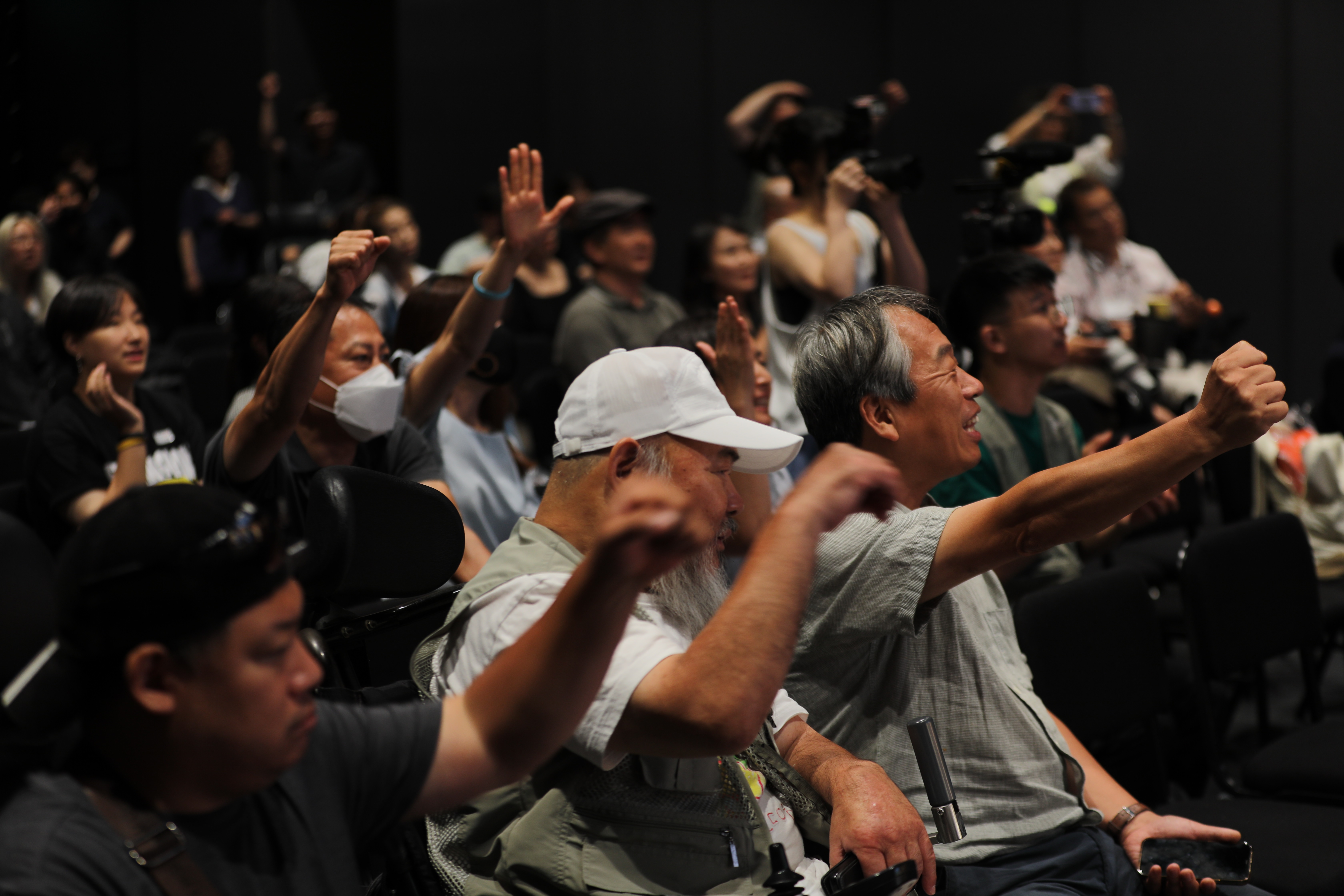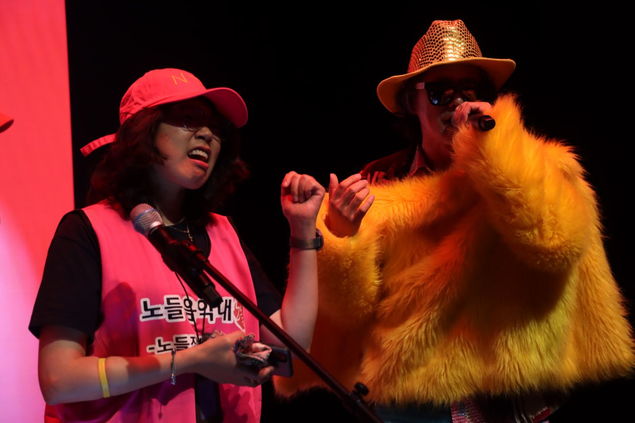 ์ ๋ฅผ ๋ง๋ฌด๋ฆฌํ๋ฉฐ ๊ด๊ฐ์ ์ฌ๋๋ค์ด ๋